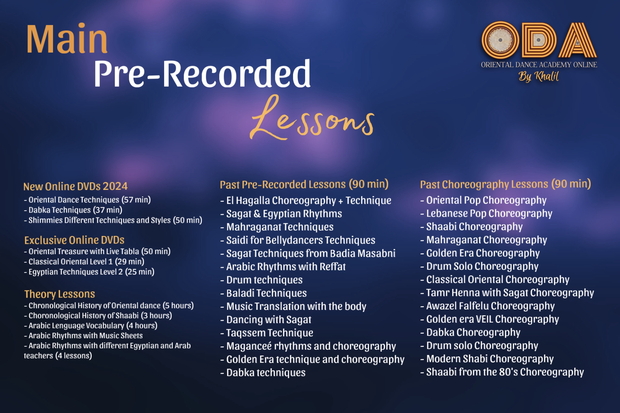 By subscribing, you get full access to the complete study of Oriental dance, covering all styles from folkloric and traditional forms to Baladi, Classical Oriental, Shaabi/Golden Era, and more. Learn through pre-recorded classes, group sessions, and private lessons, while mastering technique, stage elements, choreography creation, and show performance. Scroll below to see all our main lessons and collections ready to guide you step by step on your dance journey.